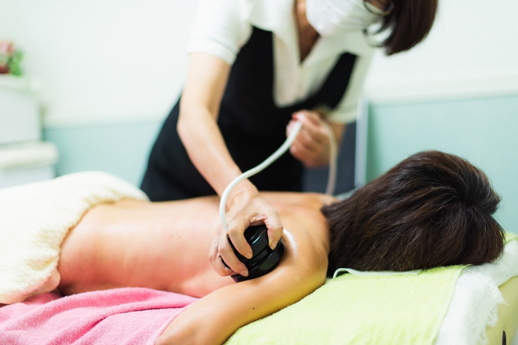 カウンセリングの後、超音波とハンドを使ってほぐしていきます。