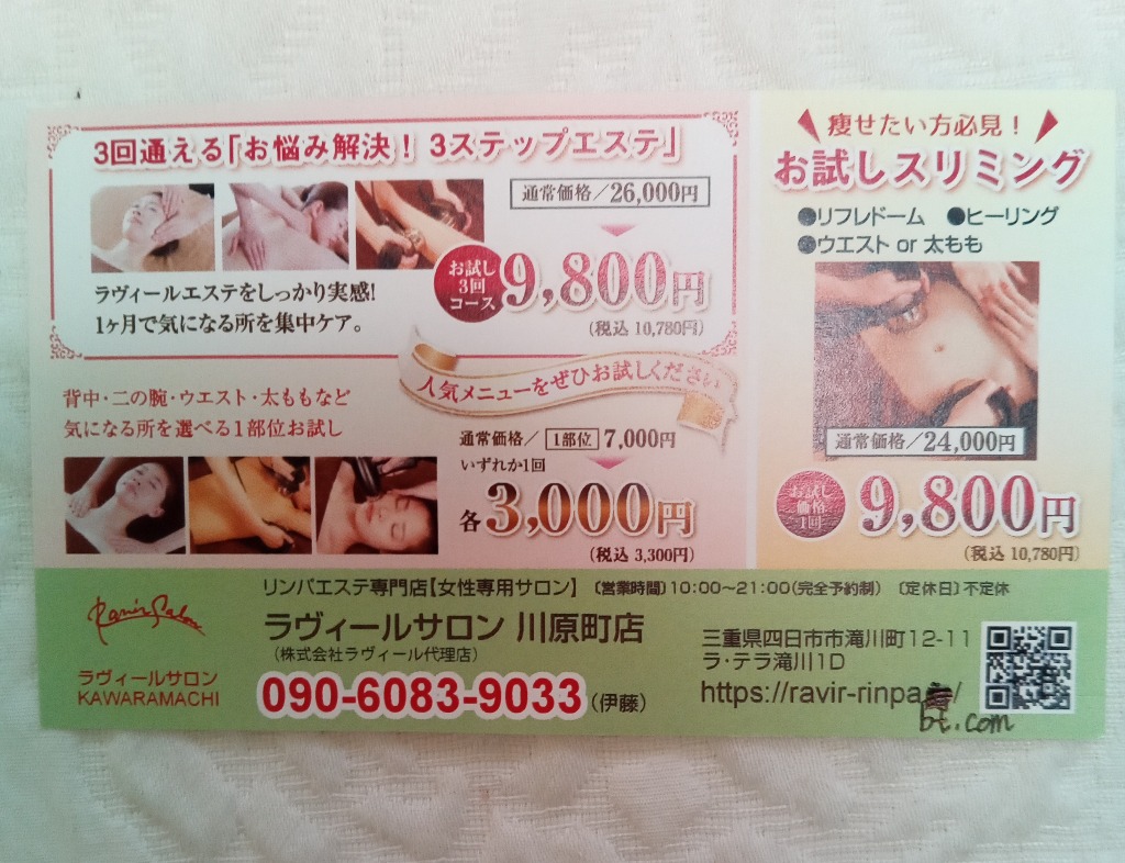 四日市にエステサロンを構えており、様々な悩みがある方に向けて施術を行っていきます。